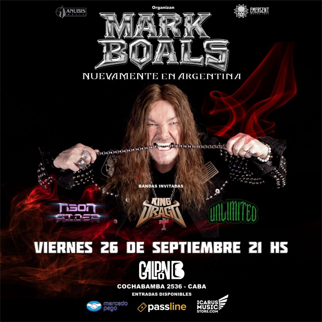 Mark Boals es considerado una las Voces más talentosas y respetadas del Heavy Metal Neoclásico Mundial. Su gran performance en vivo lo llevó a formar parte de las bandas: Yngwie Malmsteen´s Rising Force, Uli Jon Roth, Royal Hunt y Ring Of Fire, también ejecutó el Bajo en Ted Nugent y Dokken.