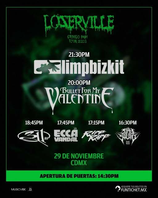 MusicVibe agradece el apoyo de las autoridades y la disposición del equipo de Limp Bizkit, Bullet For My Valentine, 311, Ecca Vandal, Riff Raff y Slay Squad para asegurar que el evento se realice en las mejores condiciones para todos los asistentes.