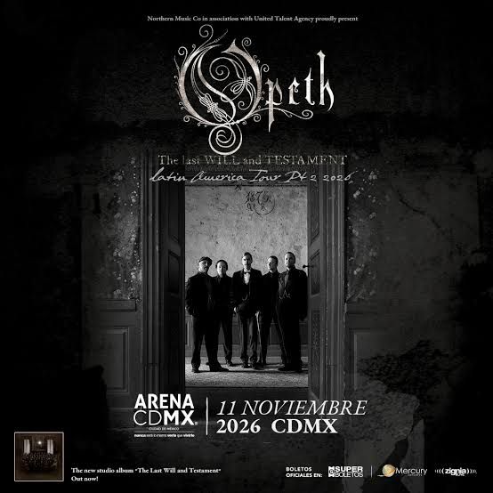 La leyenda sueca del metal progresivo, Opeth, vuelve a tierras aztecas como parte de su gira “The Last Will and Testament Latin America Tour Pt. 2”. Prepárate para una noche de virtuosismo, atmósferas oscuras y la maestría inigualable de Mikael Åkerfeldt.